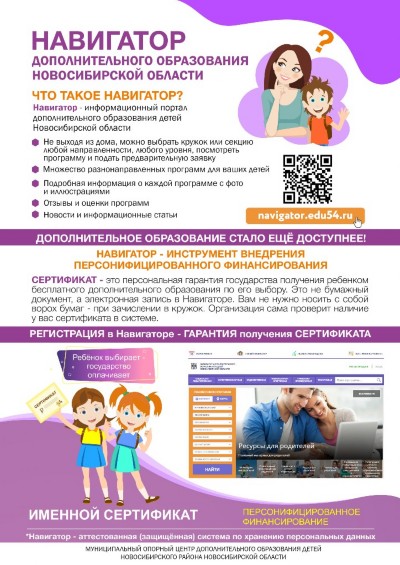 Дополнительное образованиеВ сентябре 2020 года в Новосибирской области начала работу система персонифицированного финансирования дополнительного образования детей: подробнее